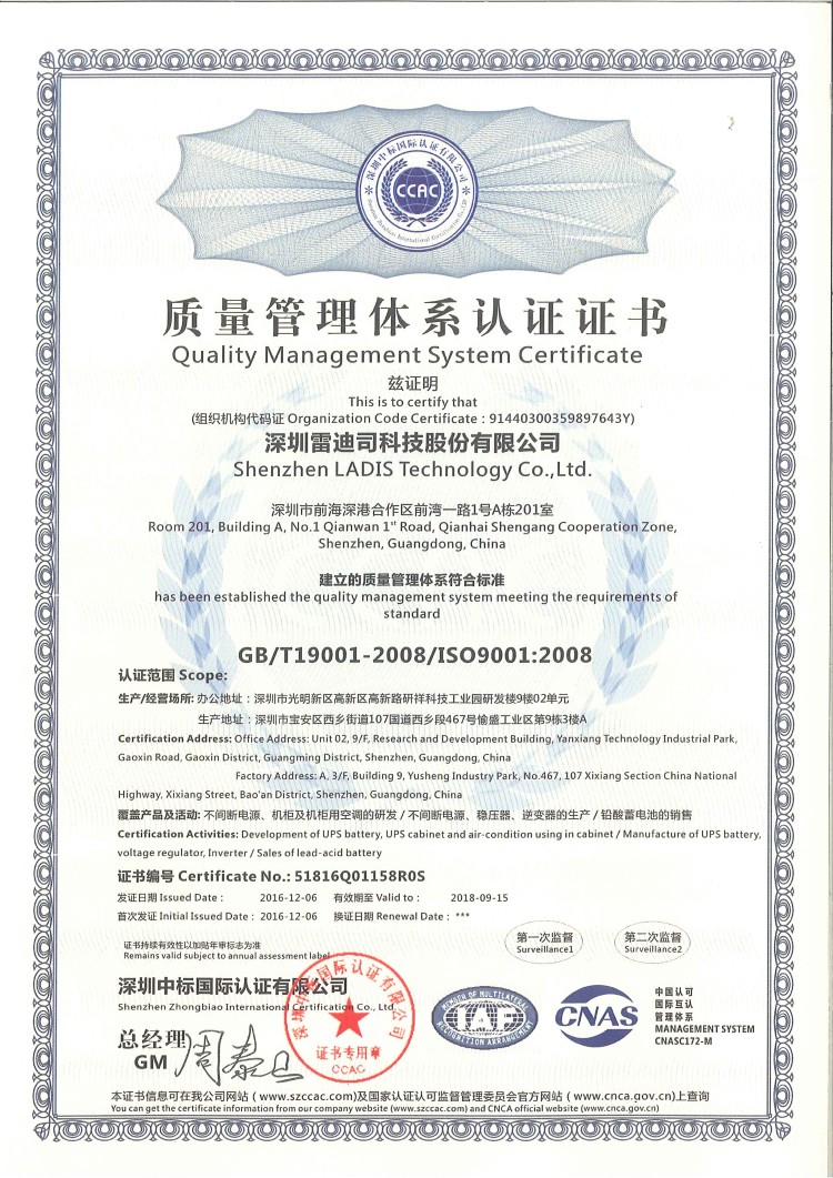 雷迪司質(zhì)量管理體系認(rèn)證證書