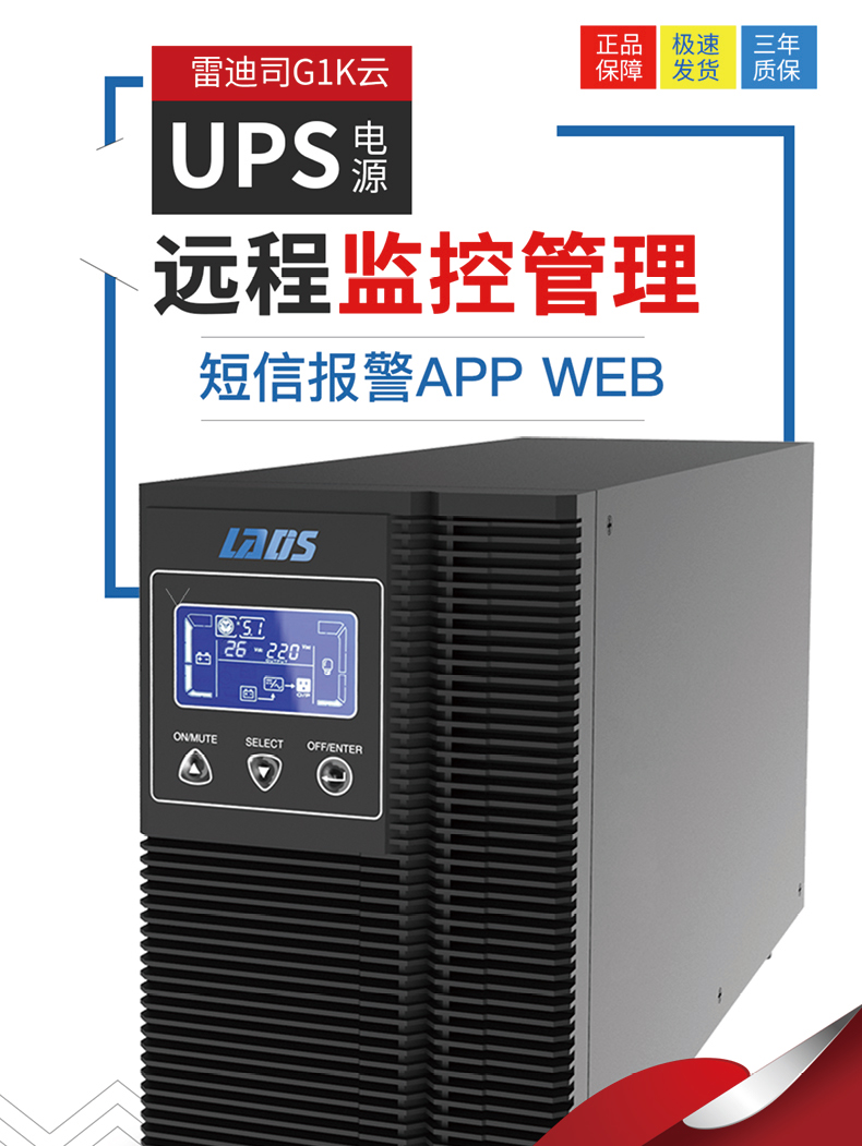 雷迪司(LADIS) 1KVA 在線式UPS不間斷電源G1K 800W 滿載10分鐘 LCD遠(yuǎn)程監(jiān)控
